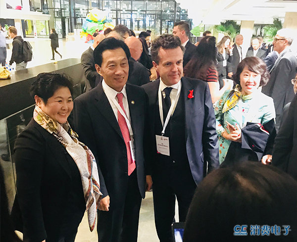 Le directeur exécutif du magazine « Consumer Electronics » Wang Fushan accompagné du Président de CTA aux États-Unis Gary Shapiro.